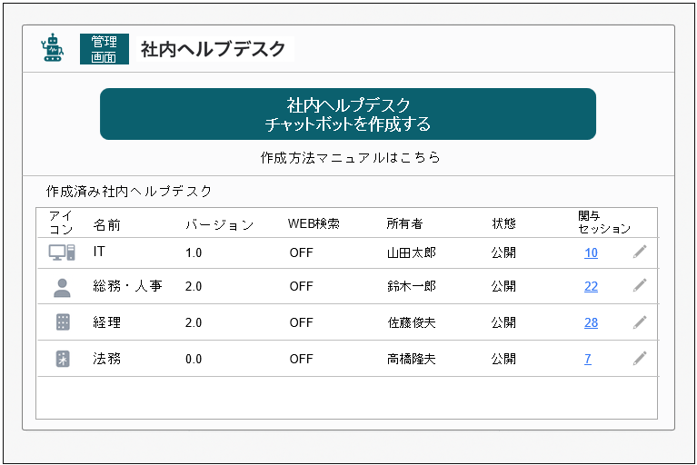 ・「どんな質問に答えるか」を一緒に整理(例:Wi-Fi、勤怠、有休、経費精算など)すでにある社内資料をもとにAIの知識ベースを作成